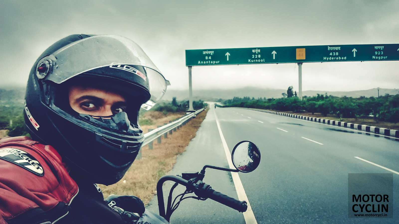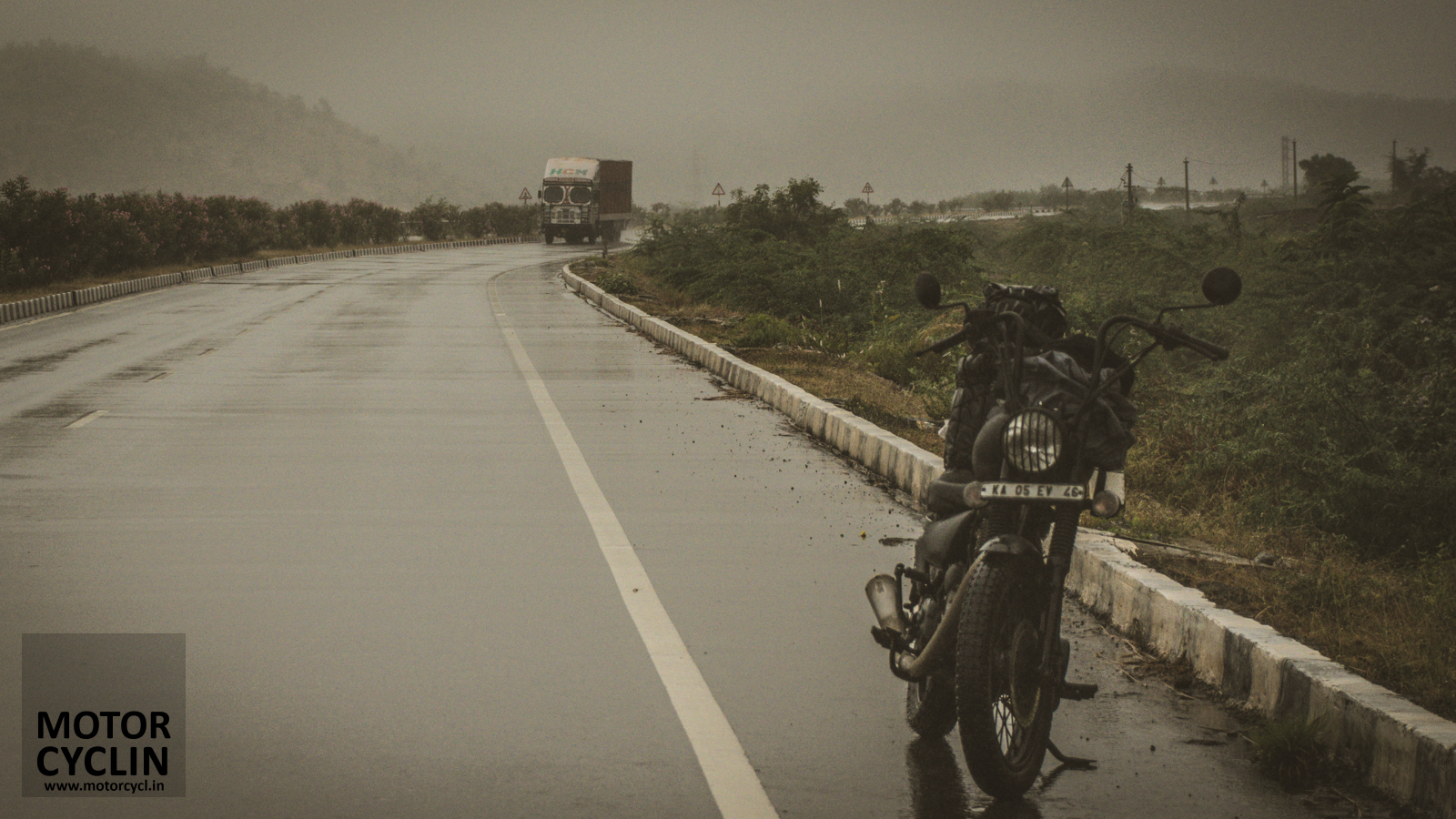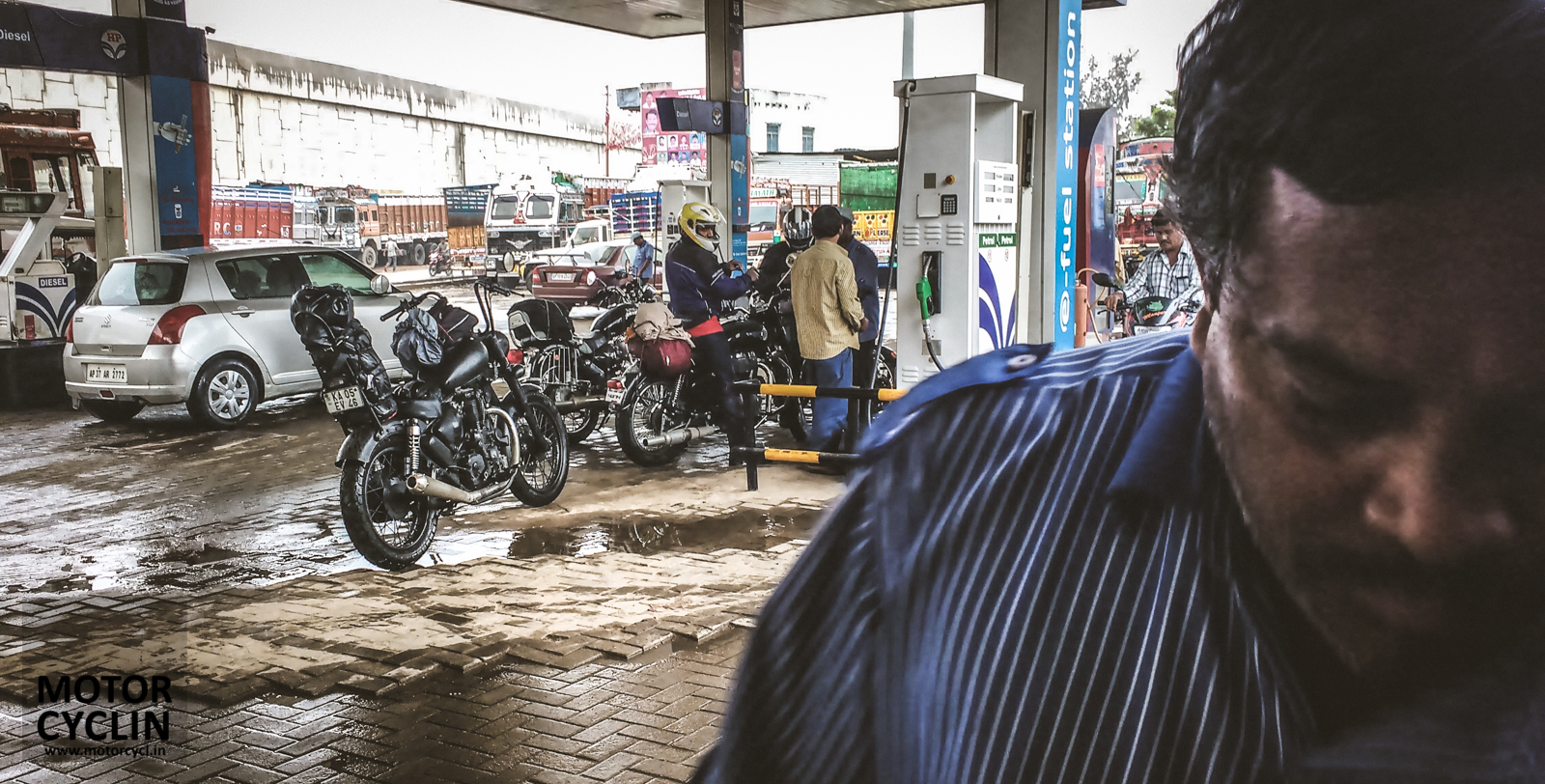Ananthpur was our place to refuel and get some respite from the rain. And, being able to pay with a card, priceless. Looking at the short mudguards at the back now, I realise that the dry bag took most of the water (and muck) that came off the road and kept me clean.