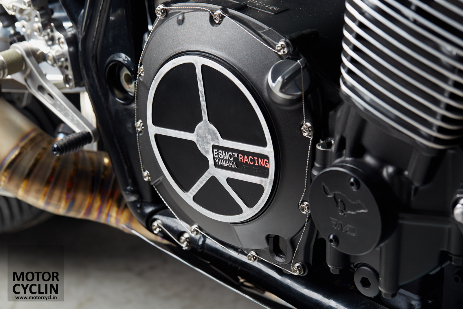 K-Tech Suspension collaborated with Novatech to develop the impressive front forks and the rear shocks and the screaming custom titanium exhaust was made by Asahina Racing in Japan, designed to fit not just the BBW, but the stock XJR1300 also. Moto GP oil cooler supplier, Taleo Racing in Madrid created the custom semi-circular oil cooler and EMD in France, machined in aluminum the prototype motor covers which will be available to buy from El Solitario for the stock XJR1300 in the foundry version.