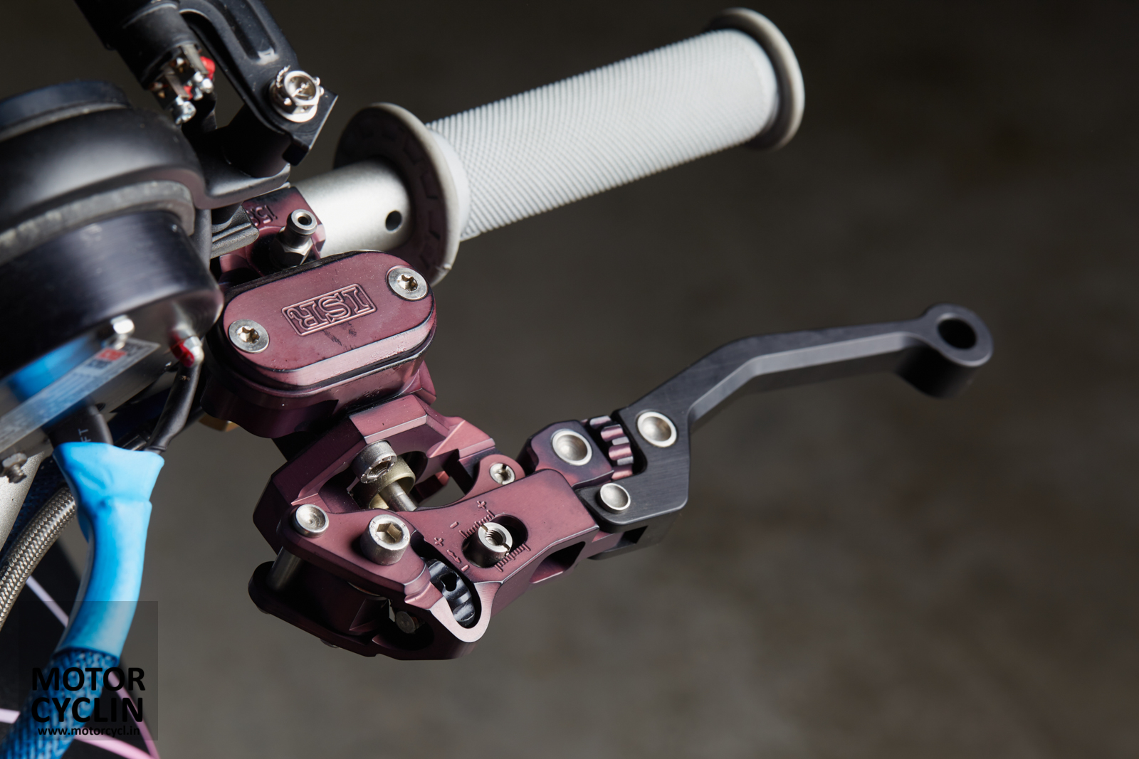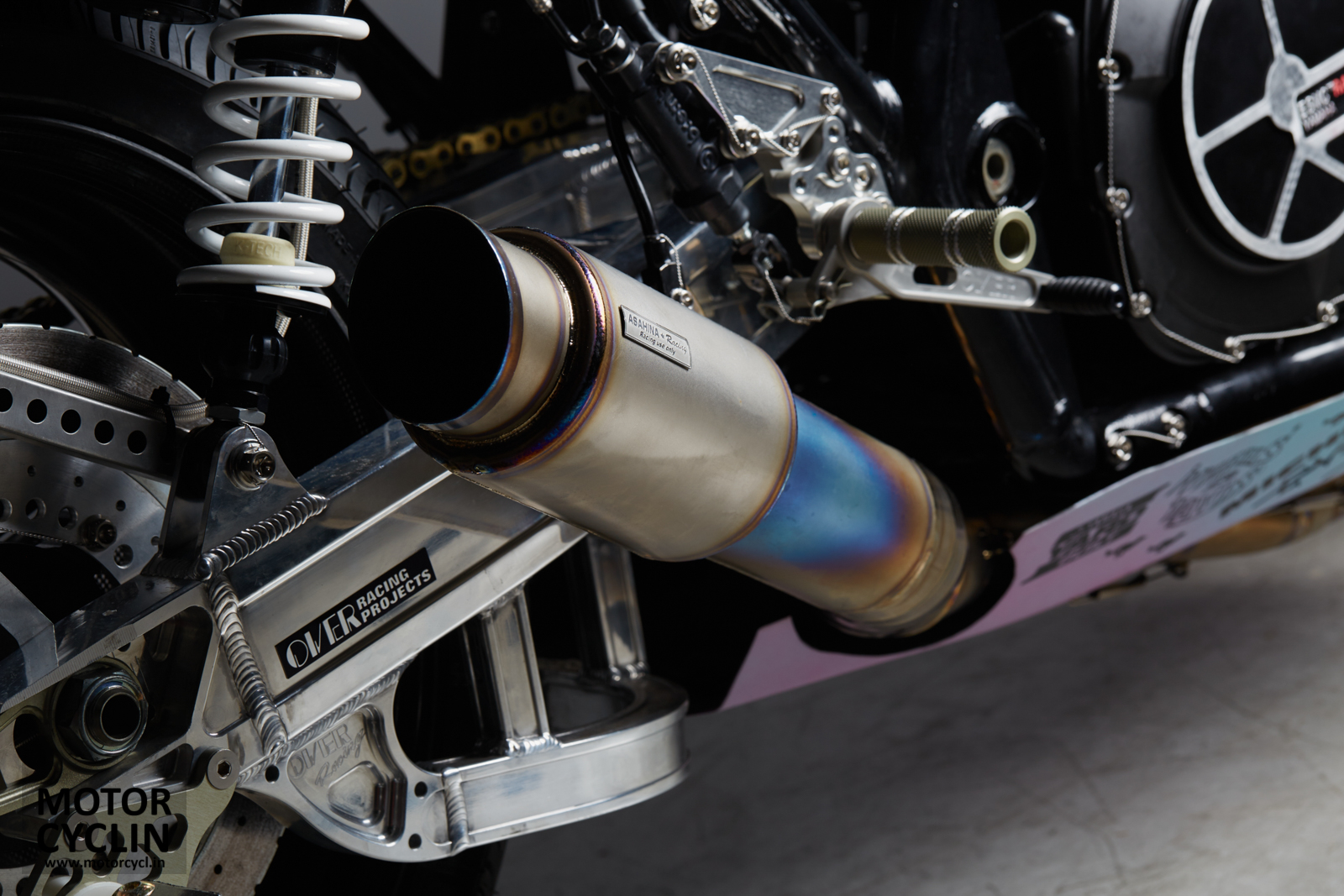 A TWM custom gas cap sets off the tank and a stunning custom aluminum swingarm by Over Racing in Japan finishes the rear along with a set of their rearsets. The BBW was wired using the Motogadget M-Unit & uses the M-Lock for on/off. Corona supplied the super cool quick shifter and PIAA supplied the intense headlights.