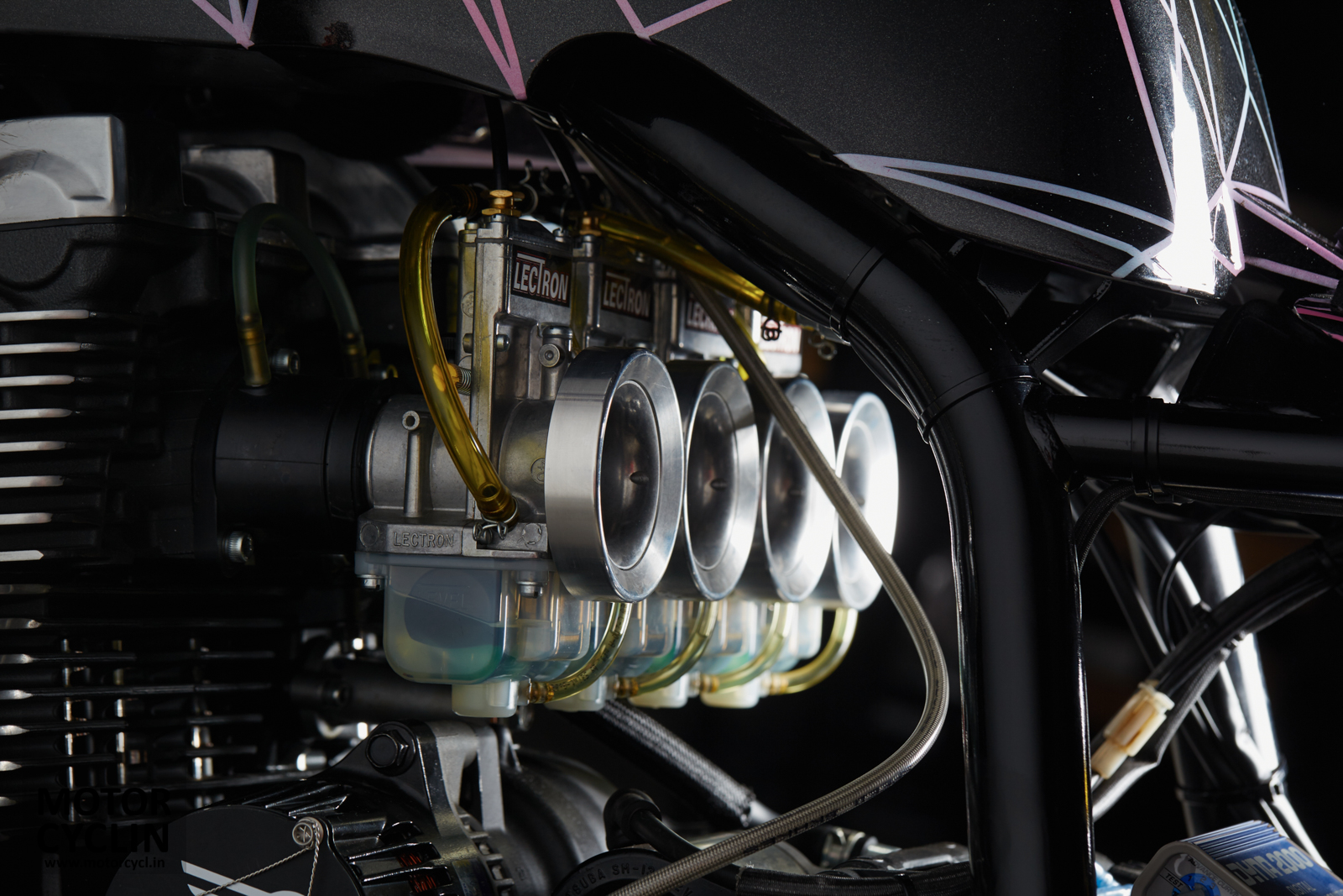 The BBW stays stuck to the tarmac with Michelin street, slick and rain tires to maximize the fun whatever the conditions. Last but by no means least the beautiful custom graphics and paint was the work of London artist Death Spray Custom.